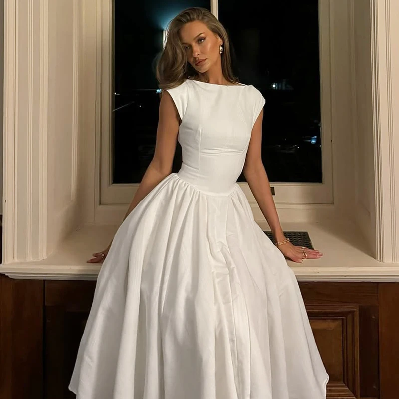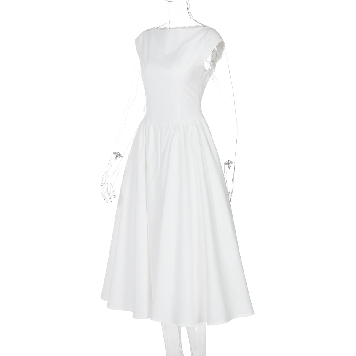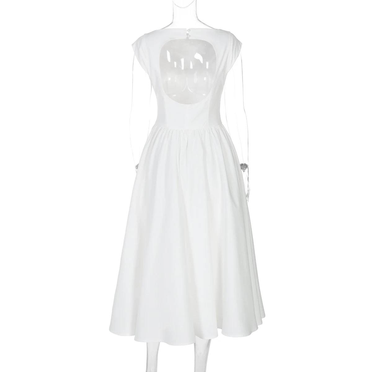 Elegant Solid Sleeveless Buttons Backless Pleated Sexy Slim Maxi Dress Women Y2K Clothes Birthday Party Vacation