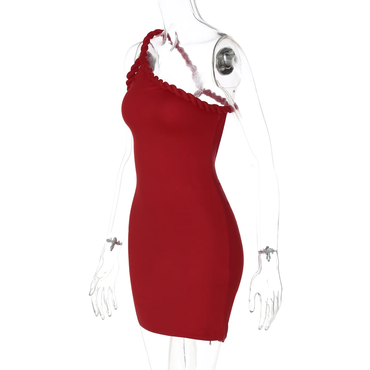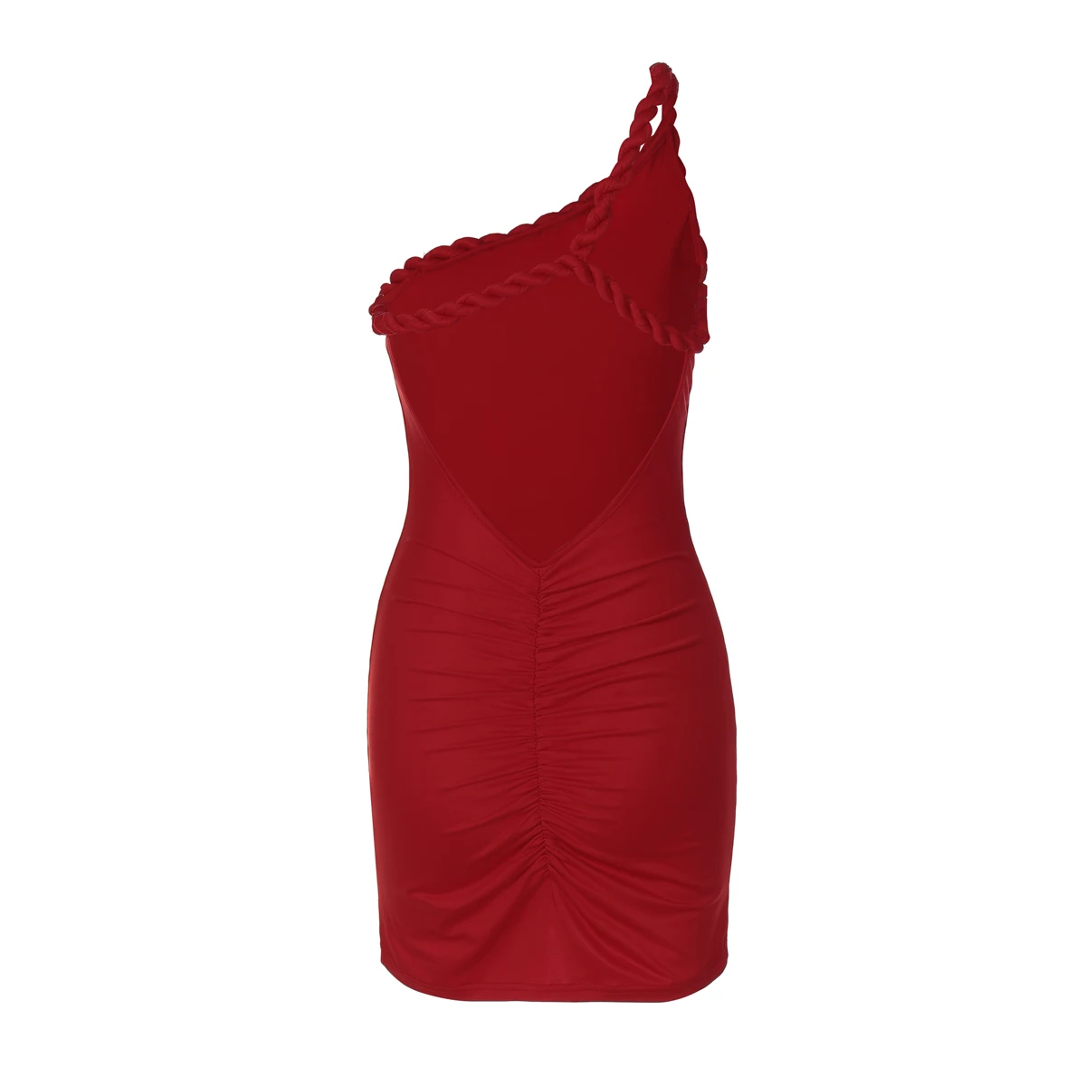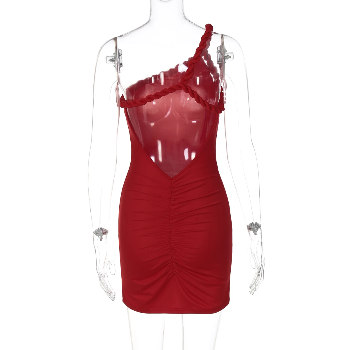 Fashion One Shoulder Straps Backless Ruched Sexy Bodycon Mini Dress Women Y2K Clothes Festival Party Streetwear
