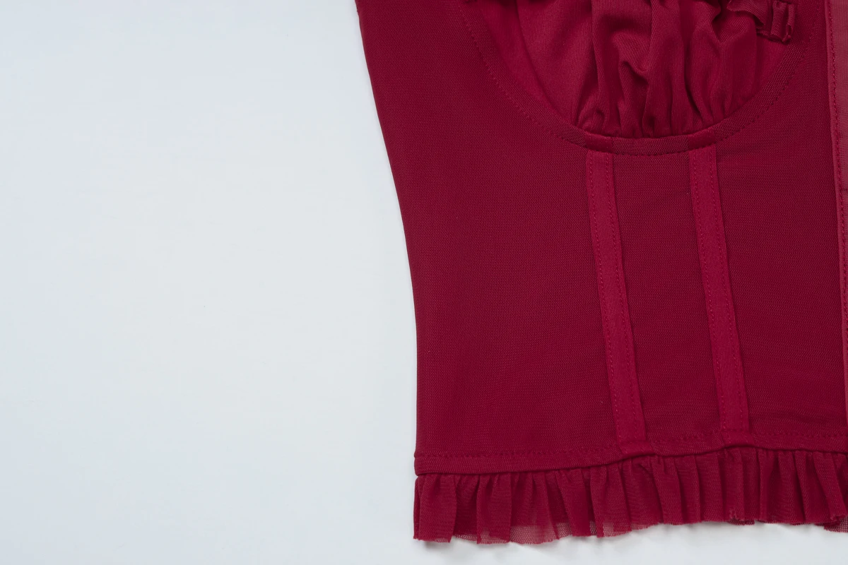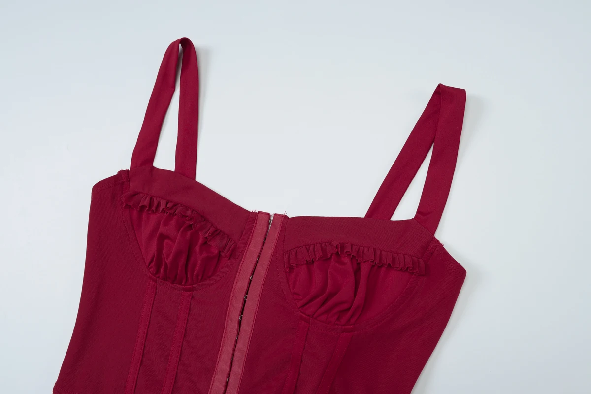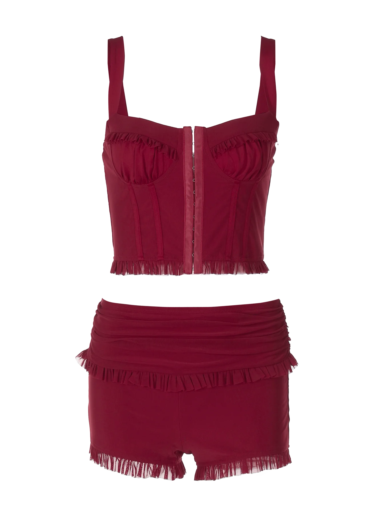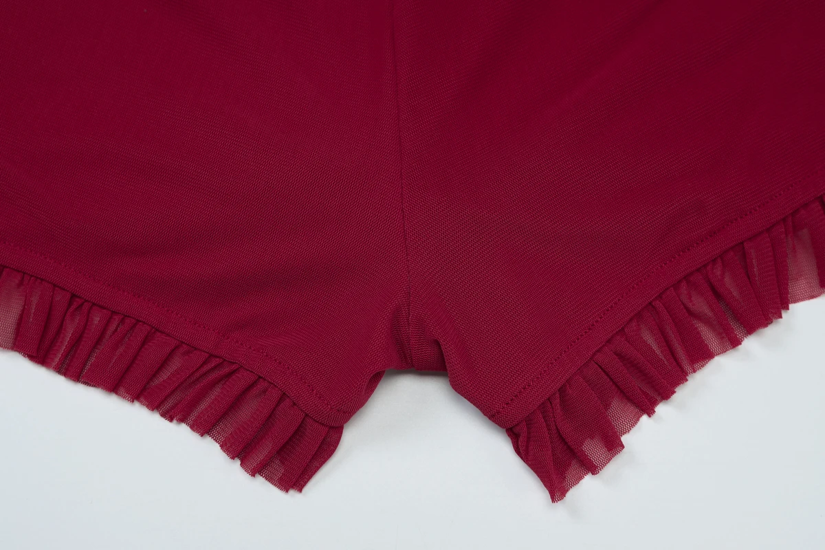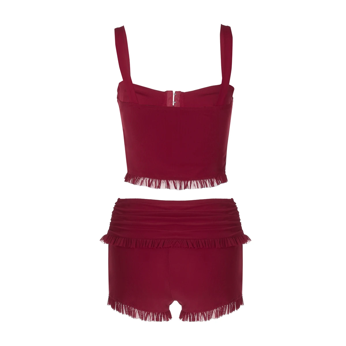 Fashion Sets Solid Ruffles Tassel Buttons Sexy Crop Tank Top Shorts Women