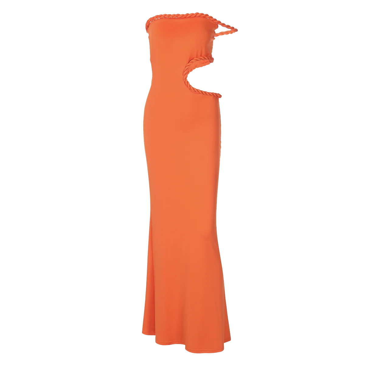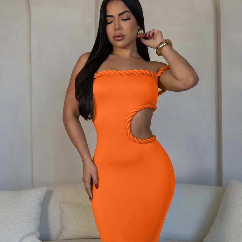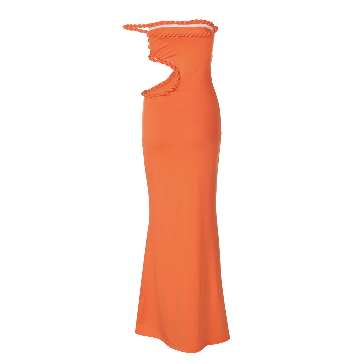 Fashion Strapless Backless Slip Solid Hollow Out Sexy Bodycon Maxi Dress Women Elegant Outfits Party Vacation