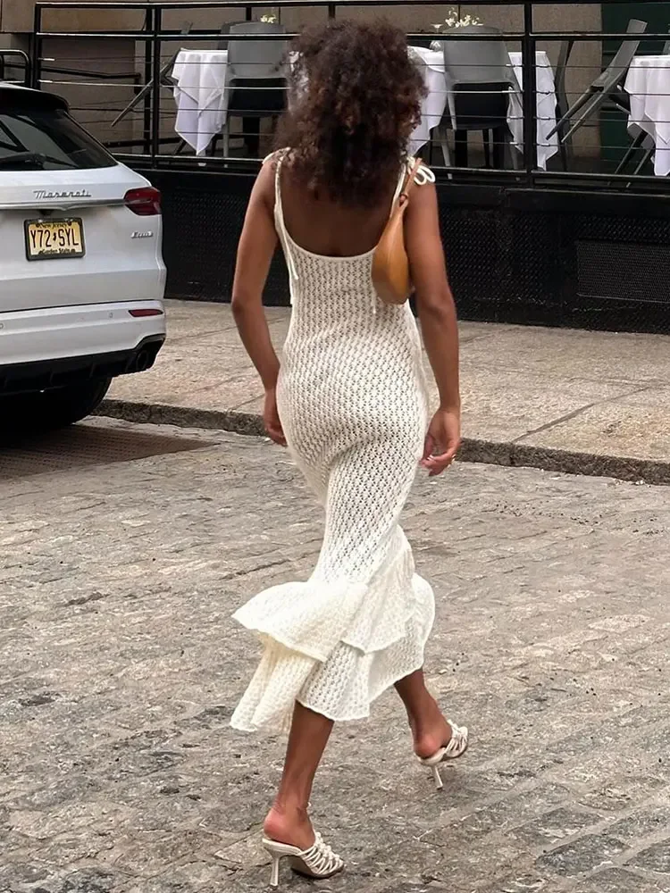 Sexy Spaghetti Ruffle Knit Beach Wrap Dress Holiday Woman Swimsuits Swimwear Cover Up Chic Slim Party Outfits