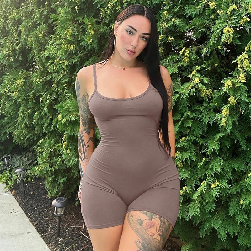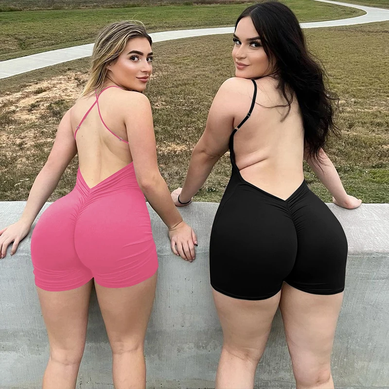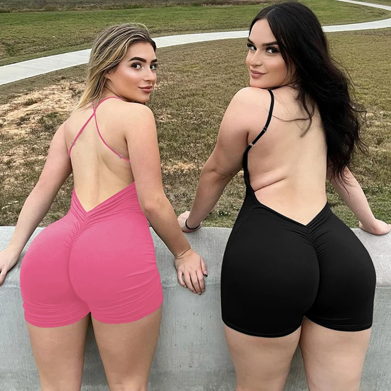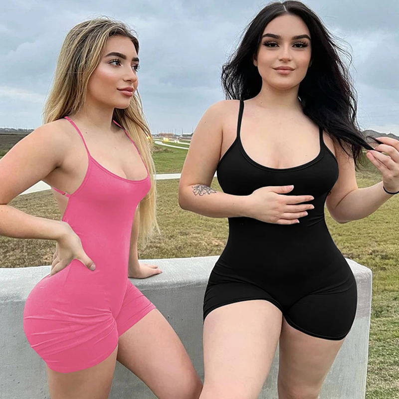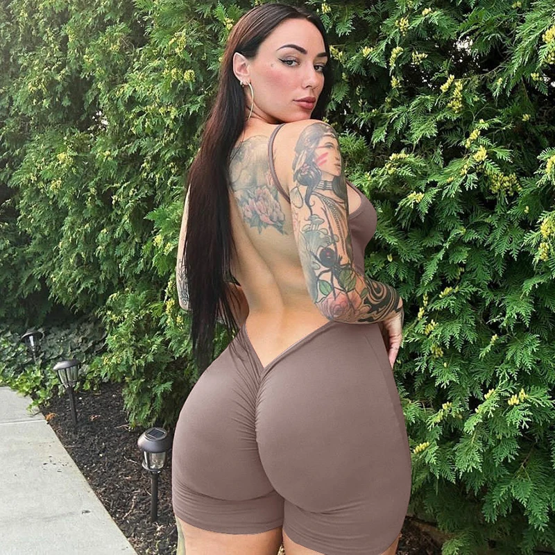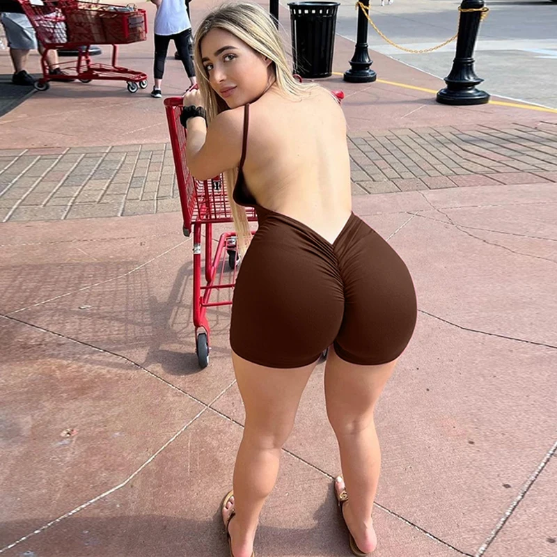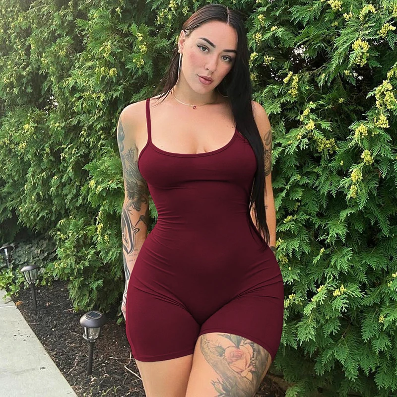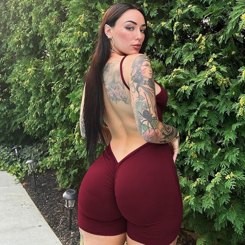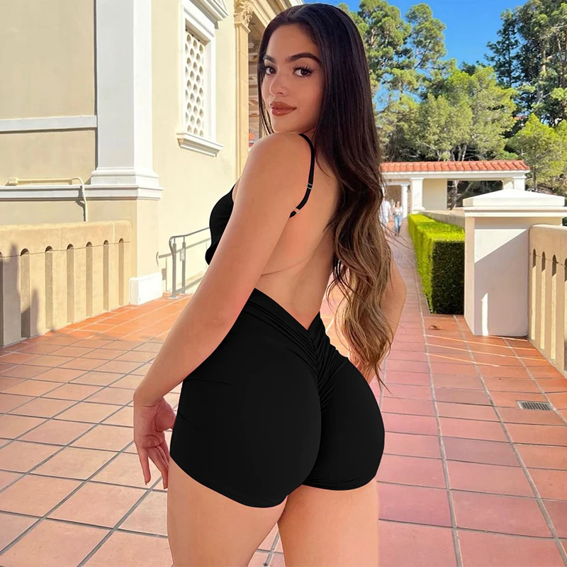 Solid Sleeveless Backless Ruched Sexy Bodycon Skinny Slips One Piece Playsuit