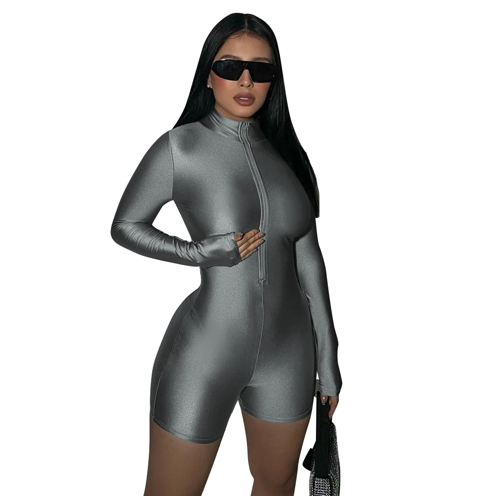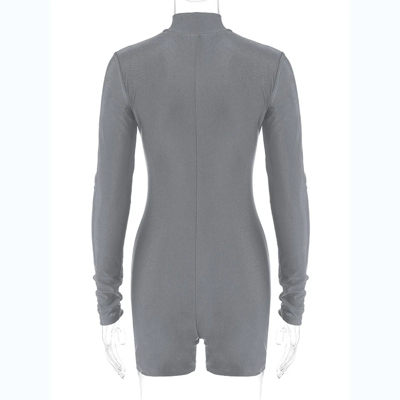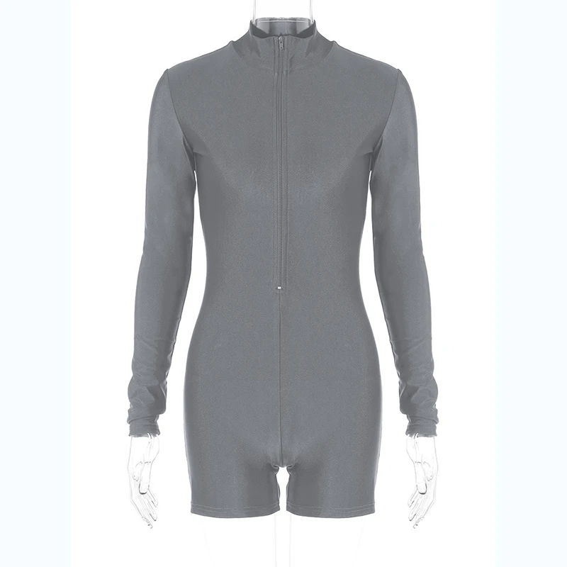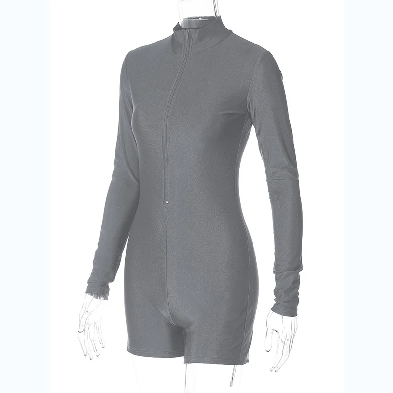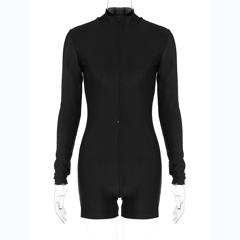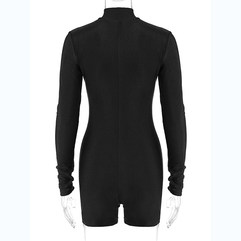 Solid Turtleneck Long Sleeve Zip Up Sexy Slim Skinny One Piece Playsuit Women Fashion Streetwear Party Romper