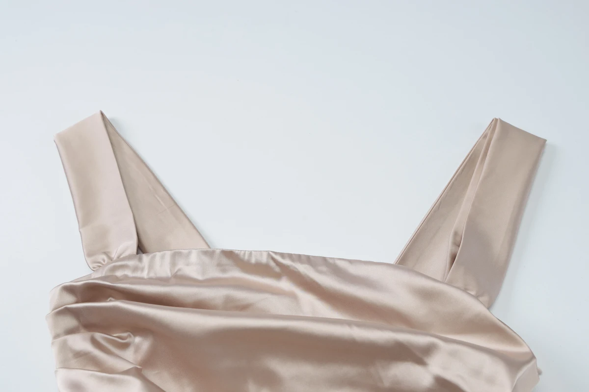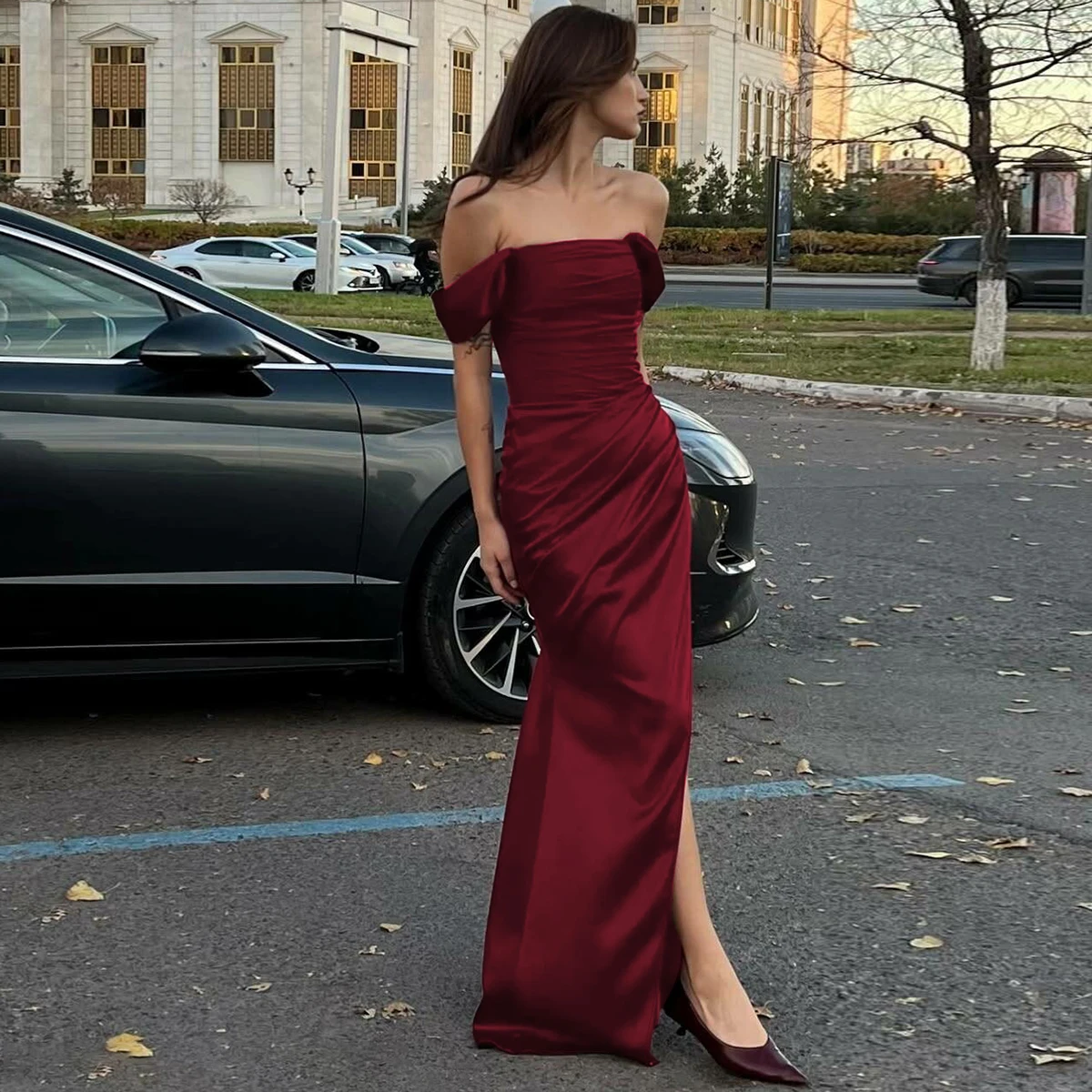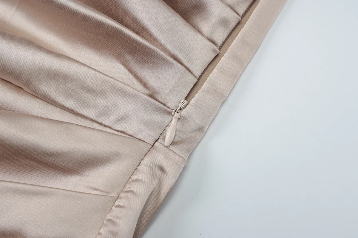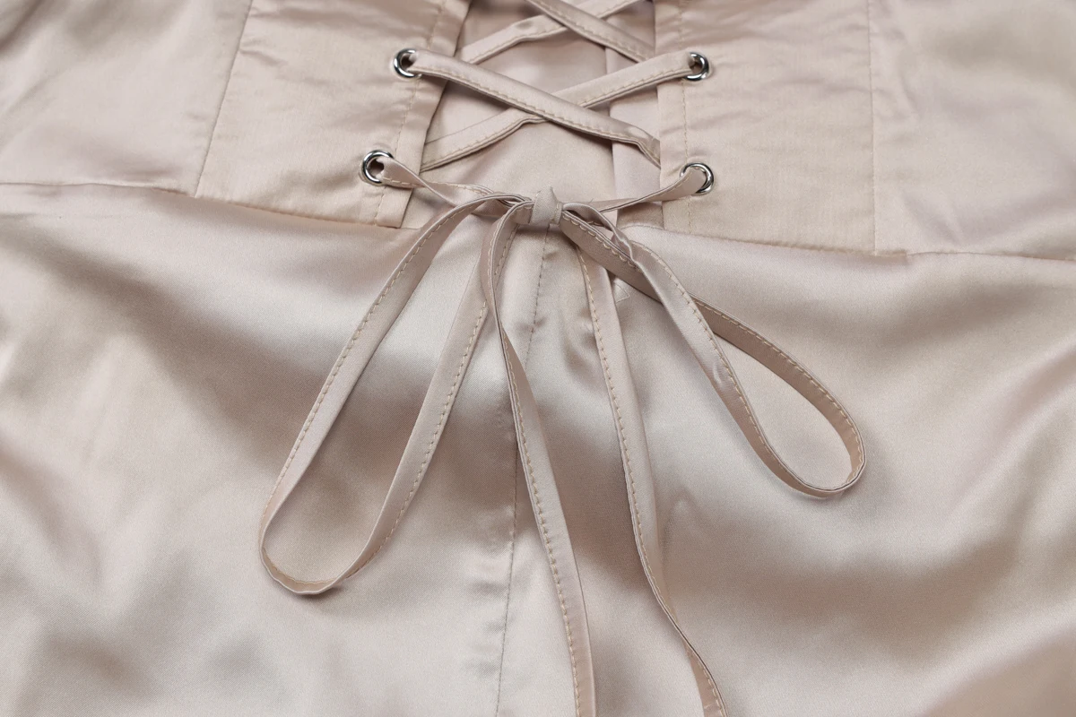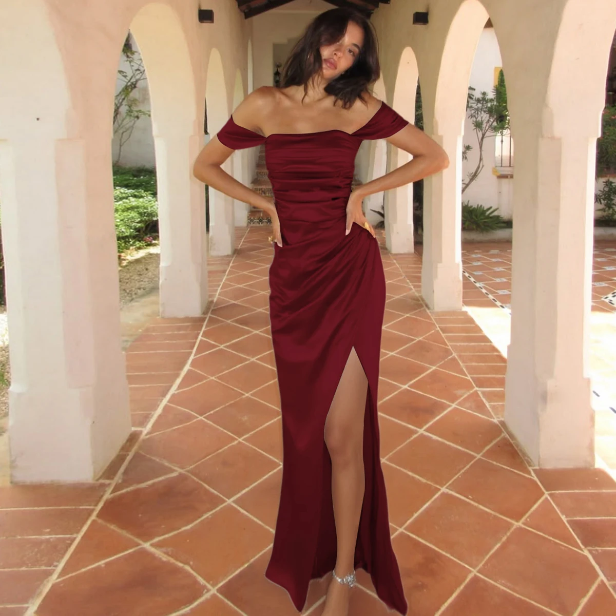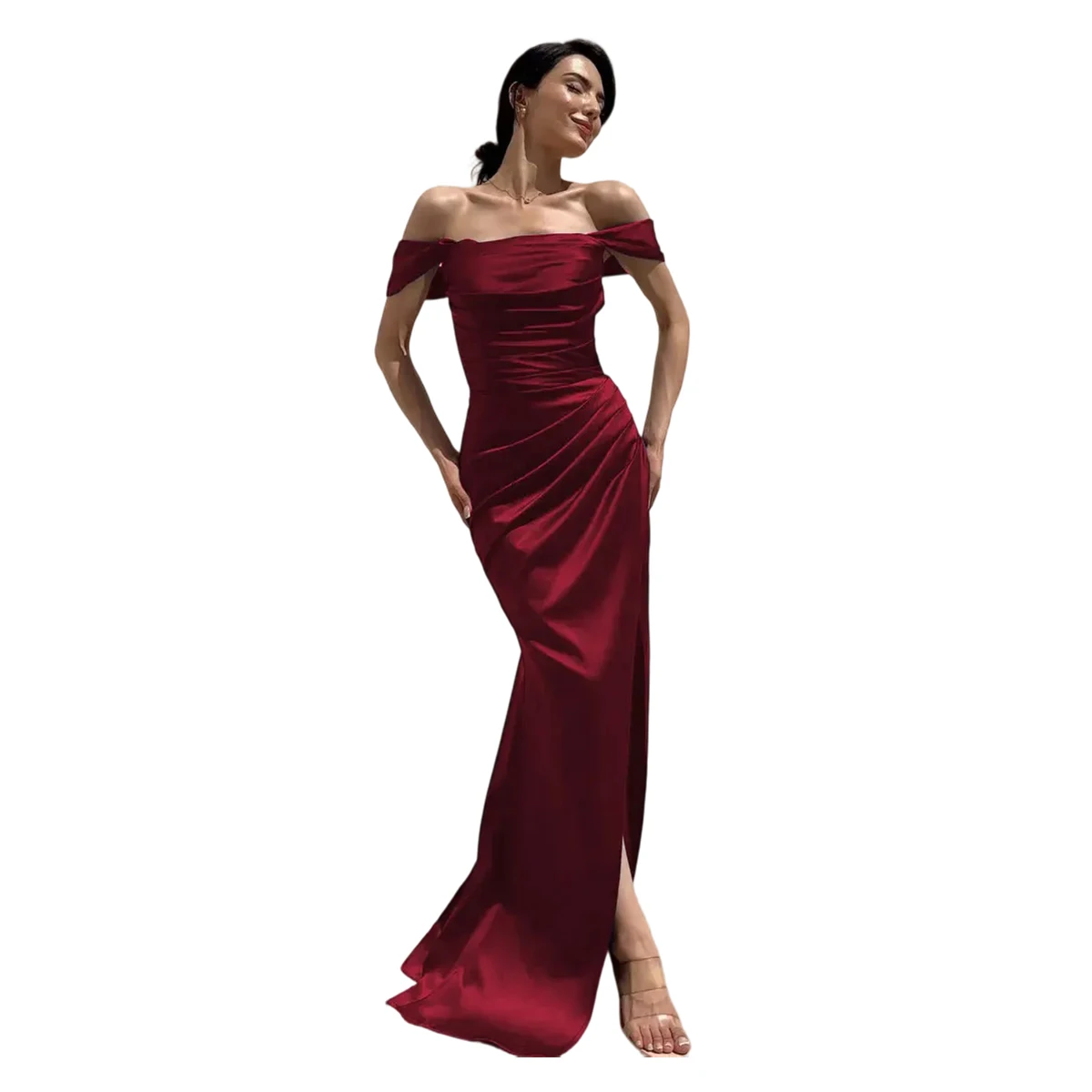 Stain Straps Solid Ruched Lace Up Zipper Slit Sexy Elegant Maxi Prom Dress Women