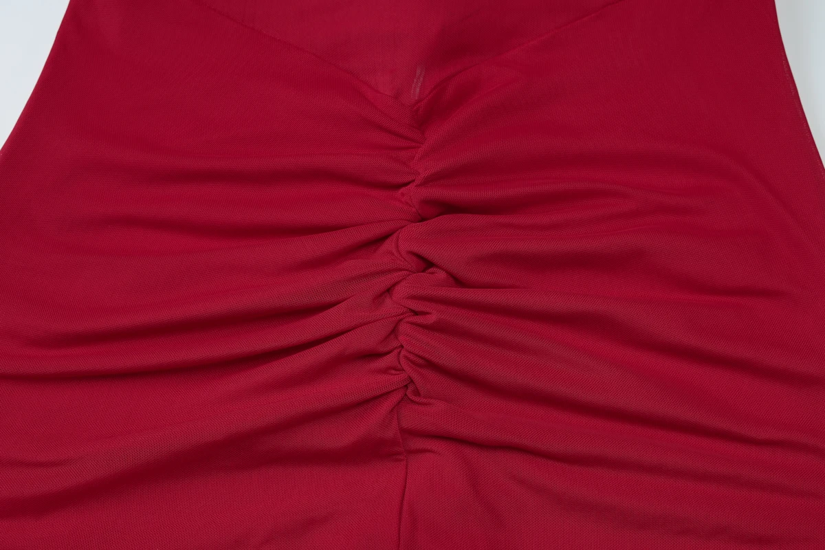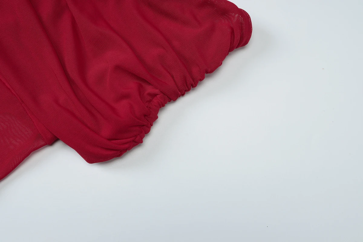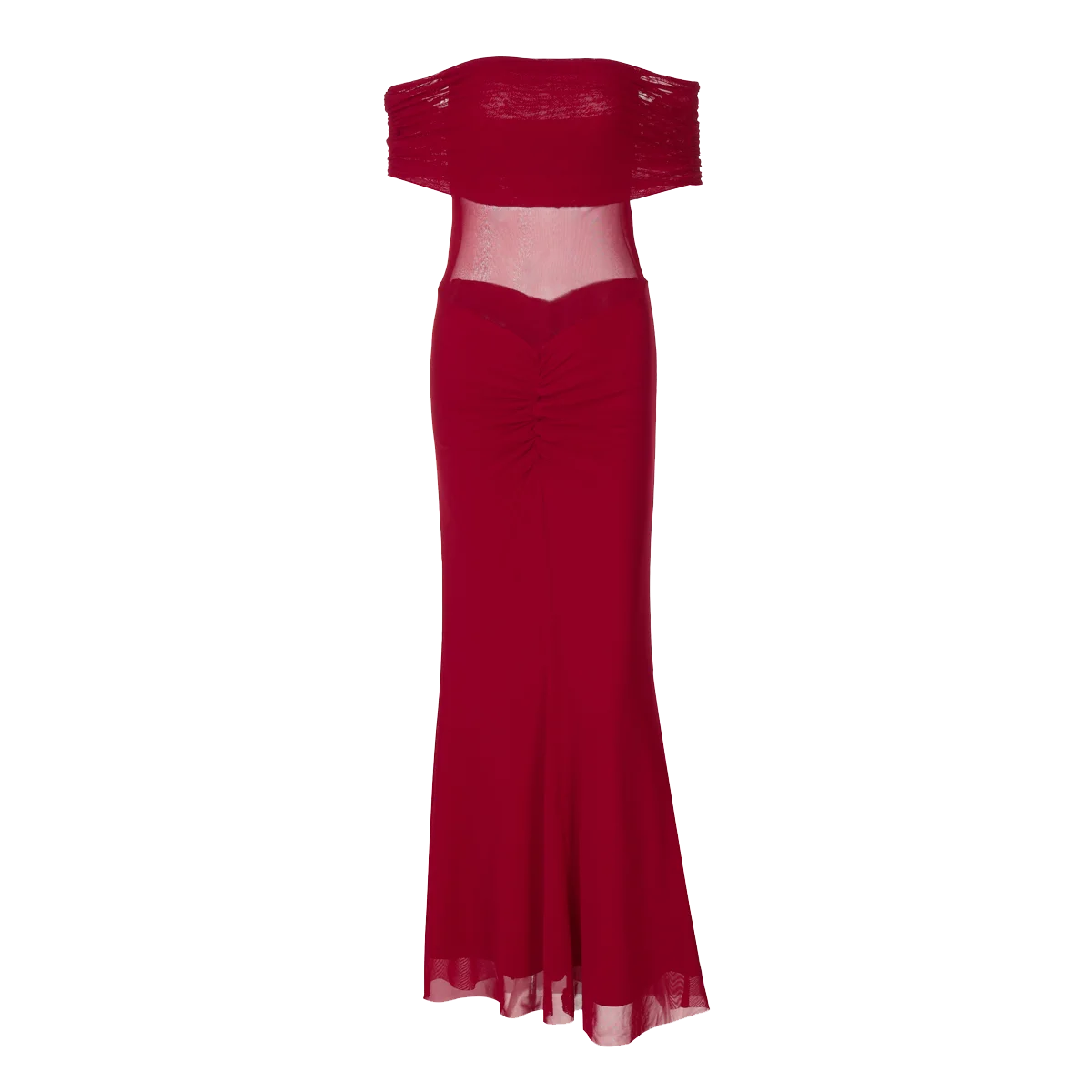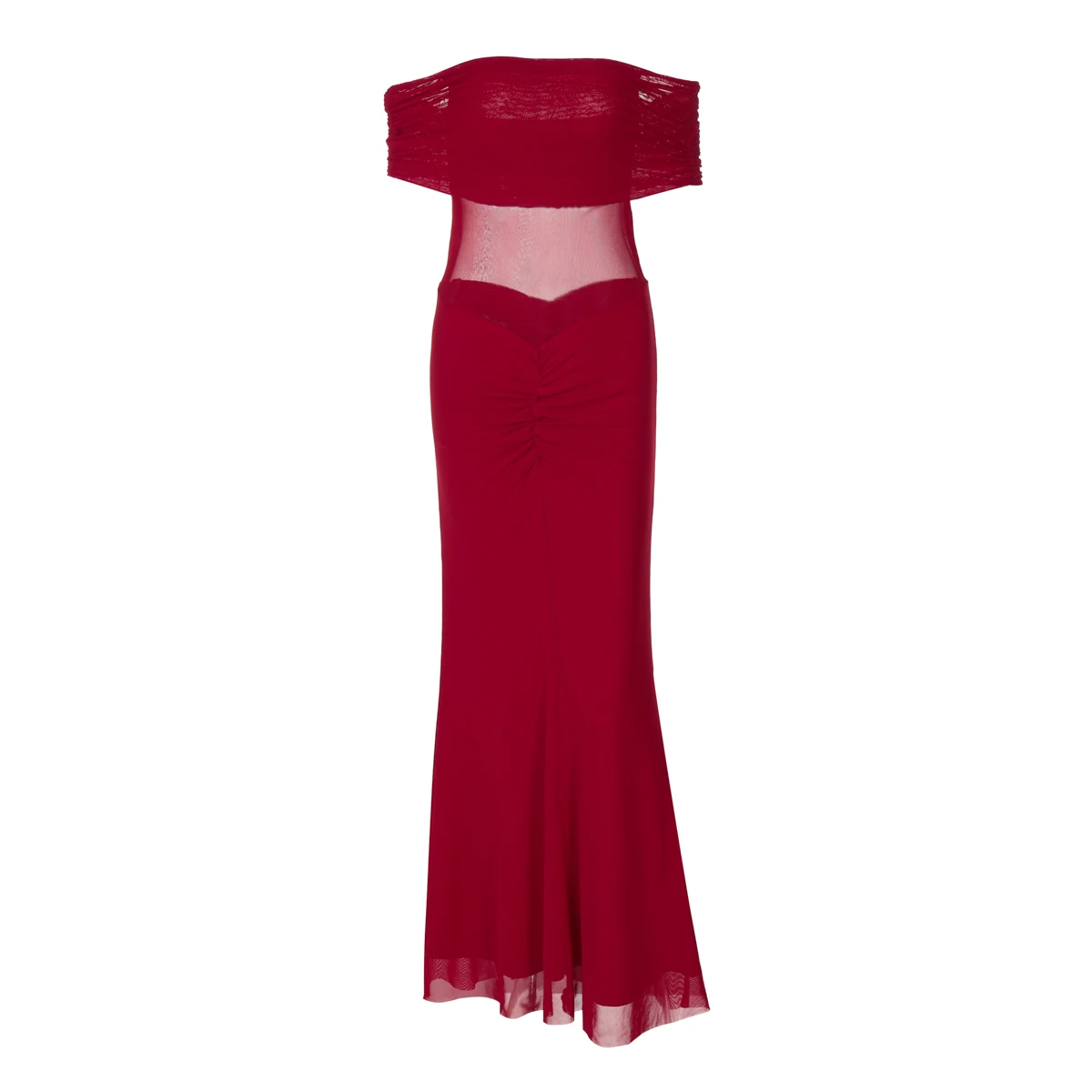 Women Elegant Slash Neck Sexy Ruched Patchwork Lace Maxi Dress See Through