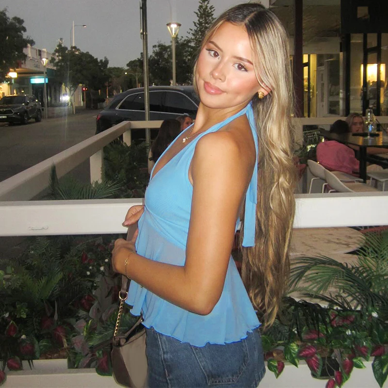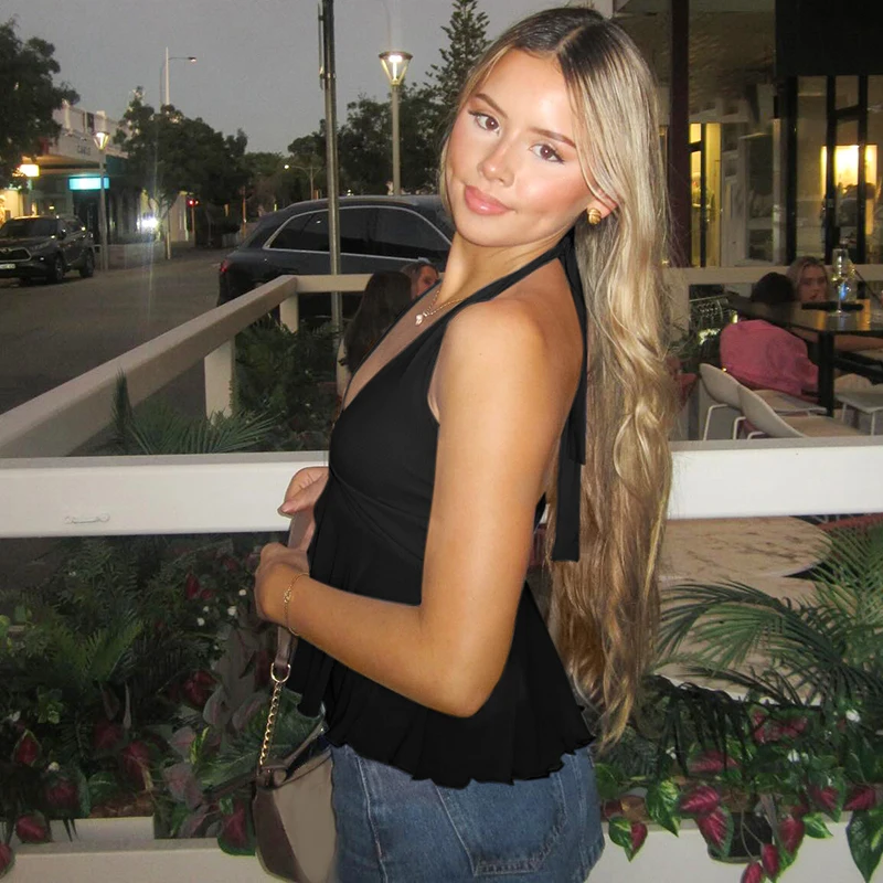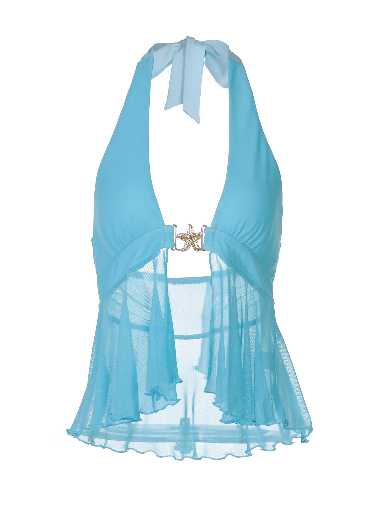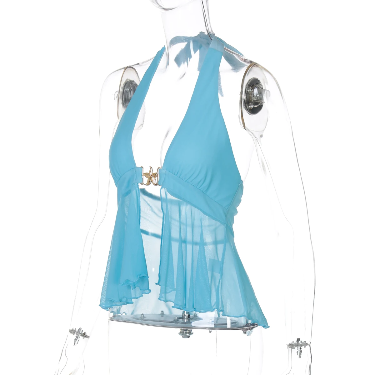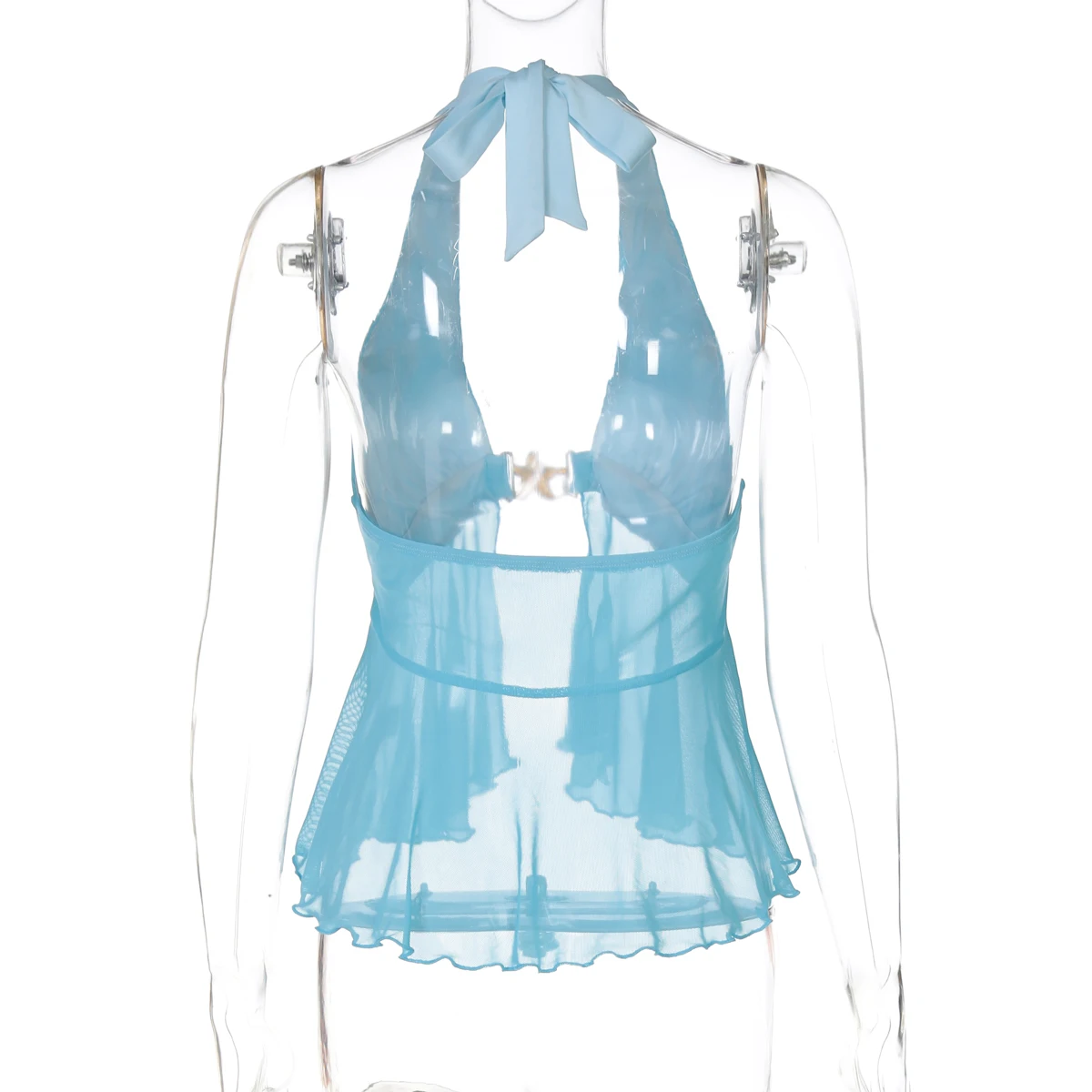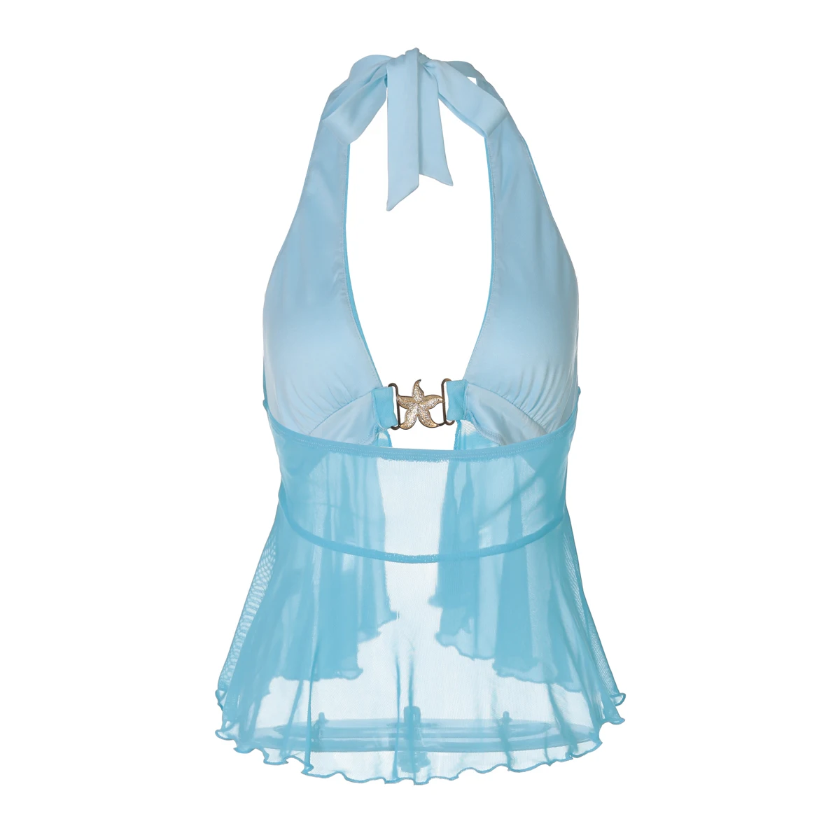 Women's Fashion Halter Hollow Out Star Metal Patchwork Mesh Backless Sexy Tank Top Bandage